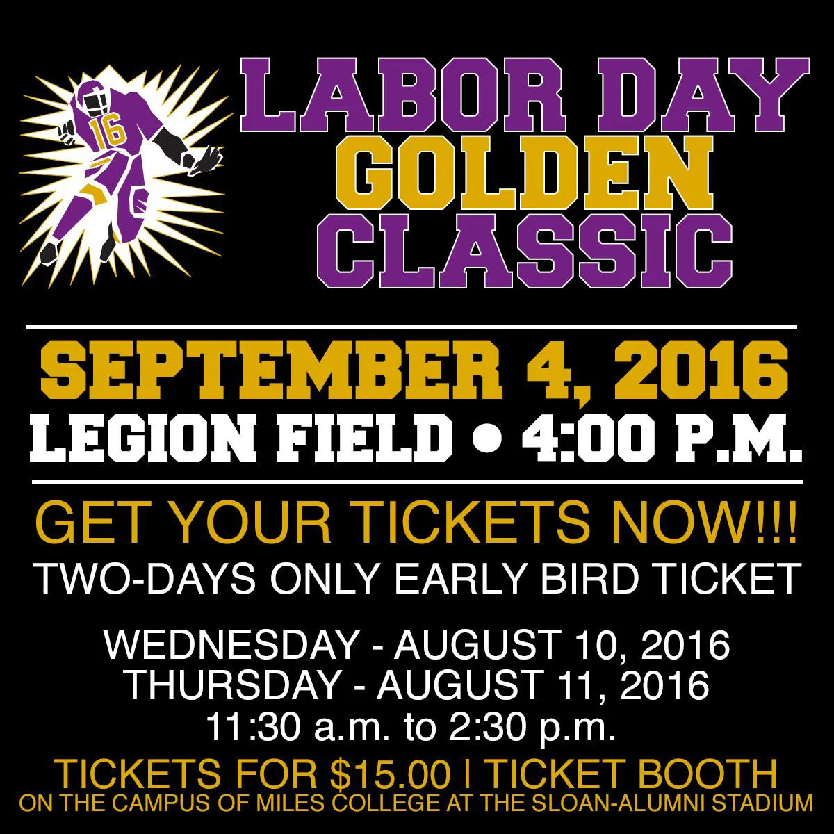 WILDCAT FOOTBALL: FVSU VS Miles College Sunday, September 4, 2016 4:00 PM 8:00 PM 16:00 20:00 Legion Field 400 Graymont Avenue W Birmingham, Alabama 35204 USA (map) Google Calendar ICS Labor Day Golden Classic 2016