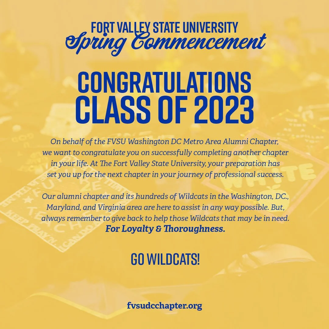 Join Fort Valley State University for the commencement ceremony of the Class of 2023 on Saturday, May 13, 2023 at Wildcat Stadium.
