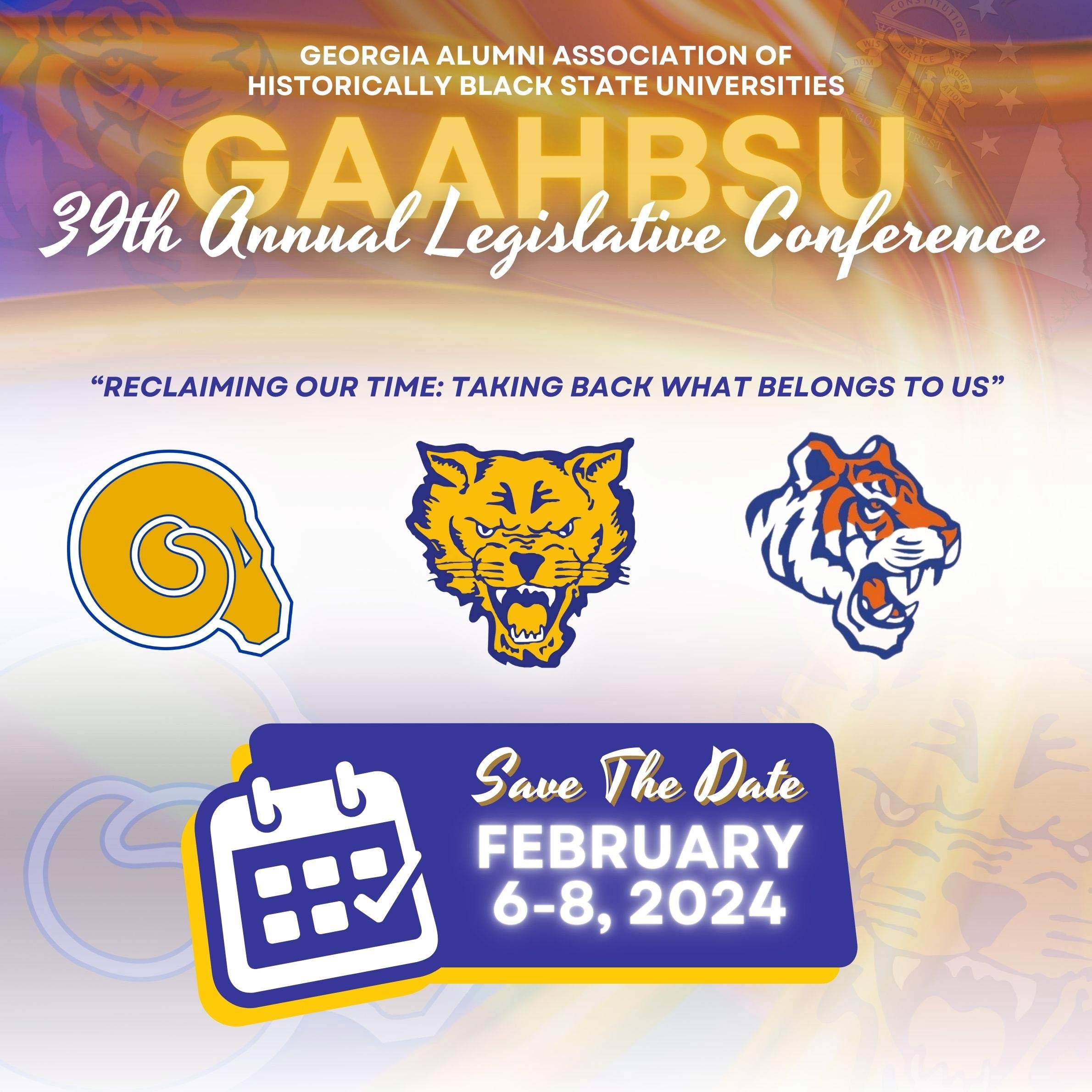 The Georgia Alumni Association of Historically Black State Universities 39th Annual Legislative Conference will be held VIRTUALLY on February 6-8, 2024. This year’s theme is “Reclaiming Our Time: Taking Back What Belongs To Us”. GAAHBSU is a partnerships of the three state National Alumni Associations, Inc. of Albany State, Fort Valley State and Savannah State Universities. This year, Fort Valley State University is the conference host. We’re encouraging our alumni to register for the conference and purchase ads. Ads can be purchased for a business, personal or alumni chapter.