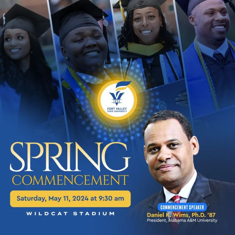 Students, family members, and guests are invited to attend Fort Valley State University's Spring 2024 Commencement exercises on Saturday, May 11, 2024 at 9:30 a.m. We want to extend our congratulations the graduating students and their families on this momentous occasion.