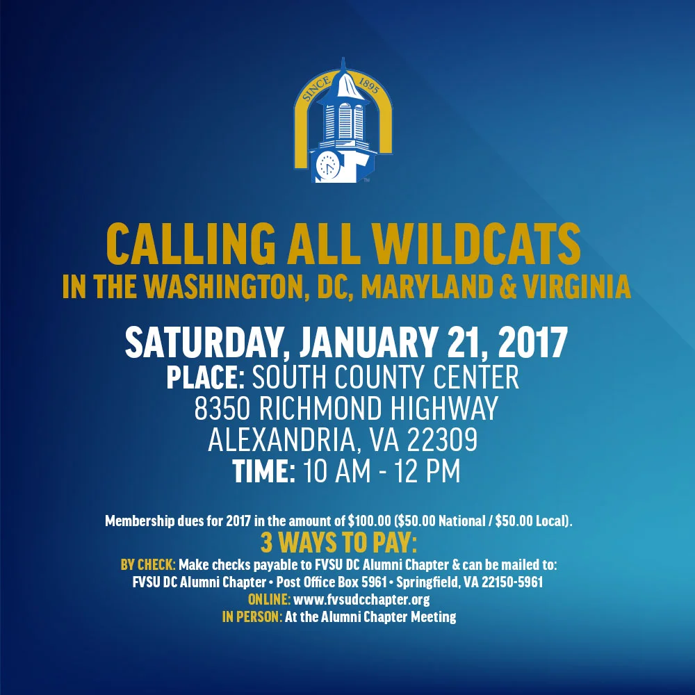 Monthly Chapter meeting for 2017. Dues will be accepted for 2017. $100 ($50 National Dues / $50 Local Dues)